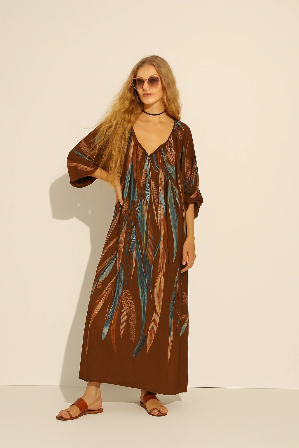 Túnica estampada con nuestra exclusiva estampa Iruya. Cuenta con un ajuste holgado, escote pronunciado y mangas voluminosas.
